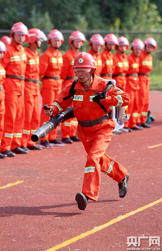 在比武現(xiàn)場(chǎng)記者看到,來(lái)自全市各地12個(gè)縣(市、區(qū))的參賽隊(duì)伍同臺(tái)競(jìng)技,倆倆為一組,分別按照比武設(shè)置的高壓細(xì)水霧滅火機(jī)操作、背負(fù)式風(fēng)力滅火機(jī)操作、3000米、油鋸操作、單杠引體向上、水泵操作等科目進(jìn)行逐項(xiàng)比拼。此外,為檢驗(yàn)專業(yè)消防隊(duì)員的戰(zhàn)術(shù)理論能力,還專門設(shè)置了理論知識(shí)考場(chǎng)。
