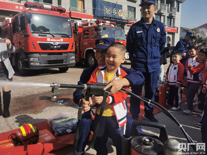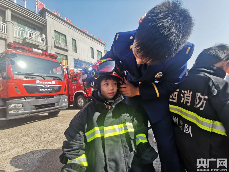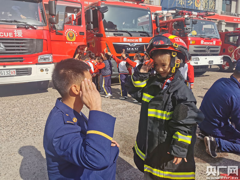 穿上消防服,長大我也要當消防員(央廣網發 通訊員供圖)