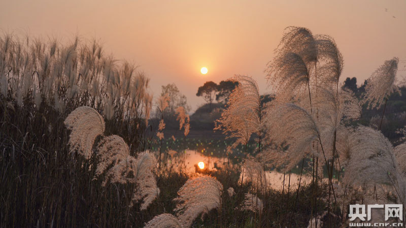 落日映照下 朵朵荻花賽云霞(央廣網發 通訊員吳寶冰 攝)