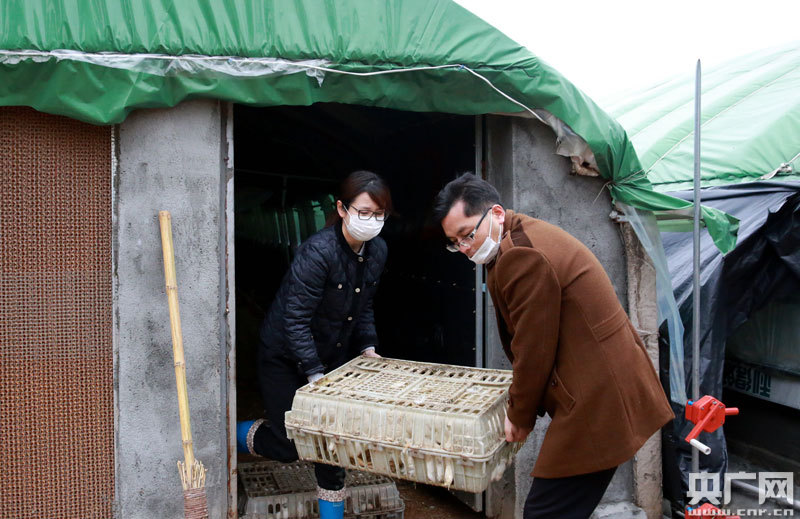 吉水縣八都鎮(zhèn)東坊村,村民們正在將商品雞裝籠出售