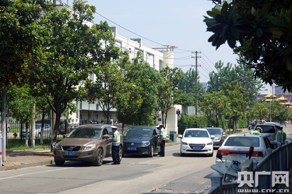 交警正在設卡檢查酒駕