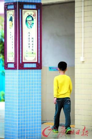 小智走在學(xué)校走廊上。廣州日報記者蘇俊杰 攝