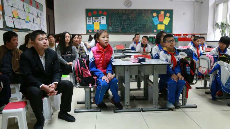 人民網北京4月20日電 (趙英梓)昨日,北京市朝陽區和平街中心小學舉辦“校園開放日”,此次開放日的主題為“家校協同齊發展 和悅課程育少年”,共有500名左右學生家長參加了此次活動。由于和平街中心小學兩址辦校,所以此次活動在高部、低部兩校區同步進行。
