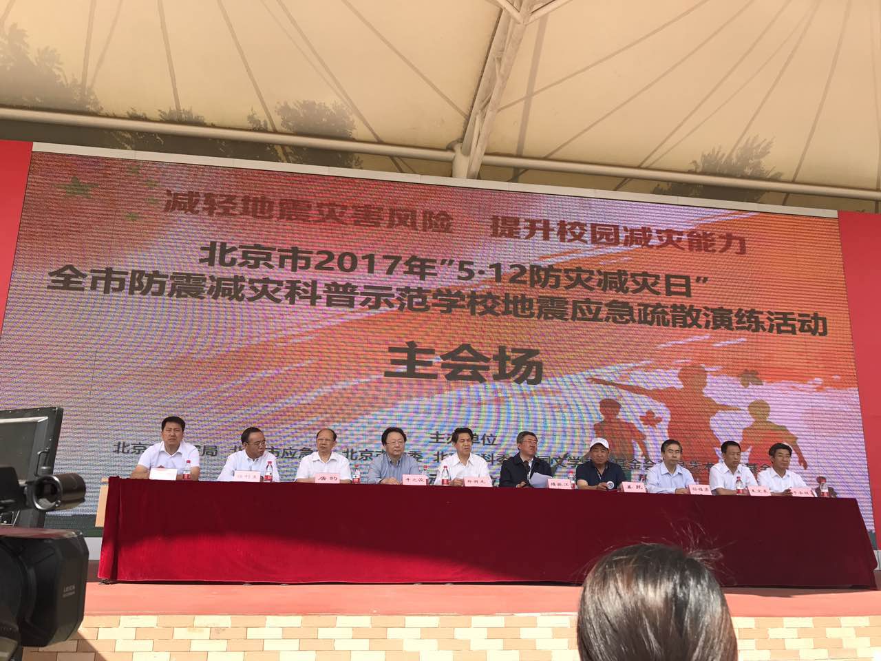 同時,全市145所防震減災科普示范學校將開展地震應急演練,涉及師生達到10萬余人。中國地震局黨組書記、局長鄭國光,北京市副市長隋振江,中國地震局副局長牛之俊,中國曲藝家協會主席、著名相聲表演藝術家姜昆,中國地震局辦公室、震害防御司領導,北京市突發事件應急委員會辦公室、北京市地震局,北京市教育委員會及海淀區區委、區政府領導出席主會場活動。FM99.6中國交通廣播的多名記者也在活動現場采訪報道并進行了視頻直播。
