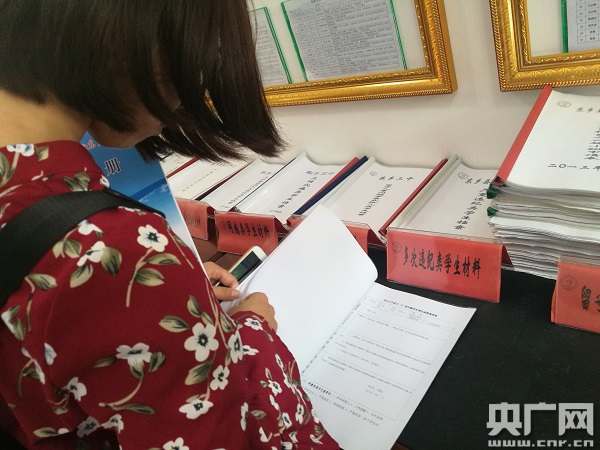 圖為記者查看東鄉(xiāng)三中留守兒童資料 央廣網(wǎng)記者王子衿攝