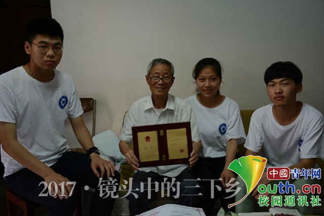 高如豐老先生向隊員們展示證書。中國青年網(wǎng)通訊員 吳義斌提供