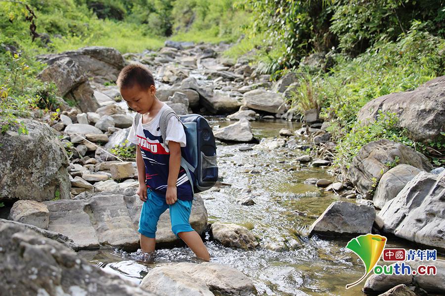 堅毅 8公里的逐夢之路 “我沒有媽媽,爸爸在外面打工,很難見到他,爺爺奶奶老了,走不了這么遠的路過來。老師,你能讓我上課嗎?”一個怯怯的聲音傳到志愿者趙晨的耳中,她不由得仔細端詳著眼前這個小男孩。 兩兄妹回家路上必經的小溪。中國青年網通訊員 譚雅玲攝 支教組制定的招生報名條件中明確要求必須要有家長帶著孩子來報名,男孩自知自身的情況顯然不符合條件,但是抱有強烈讀書熱情的他只能試探著詢問志愿者。 小男孩叫張亮,今年8歲,他還有個妹妹,叫張婷,今年7歲。與孝蓮一樣,張亮兄妹也是一對苦命的孩子,不同的是,他們沒了媽媽,卻還有個常年在外打工的爸爸。 出于關心,趙晨和隊員們決定送兄妹倆回家。 “這個是什么?”路上,隊員指著一片瓜藤問亮亮。 “這是瓜瓜,可以炒很多種菜。” “你還會做菜啊?” “對啊,爺爺奶奶端不動鍋兒!” 這段簡短的對話,使志愿者心中有說不出的難受,他們不知道小小年紀的亮亮究竟經歷了什么,在家中扮演著怎樣的角色。 -