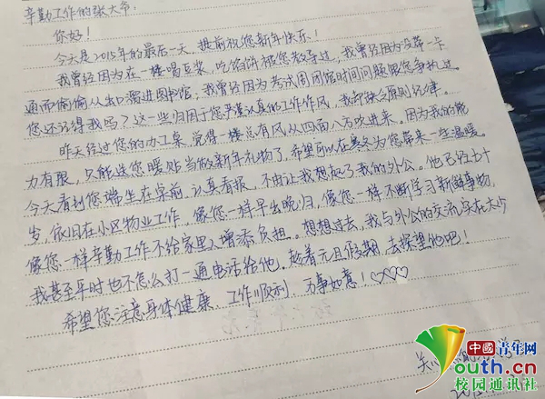 學生寫給張景海的信。中國青年網通訊員 劉積舜 攝
