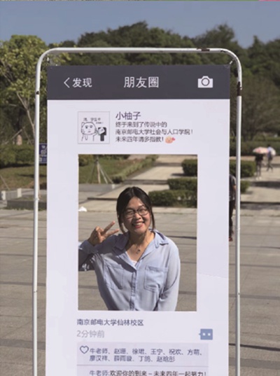 南京郵電大學(xué)為新生準(zhǔn)備的拍照框。南京郵電大學(xué) 楊澤勛/攝