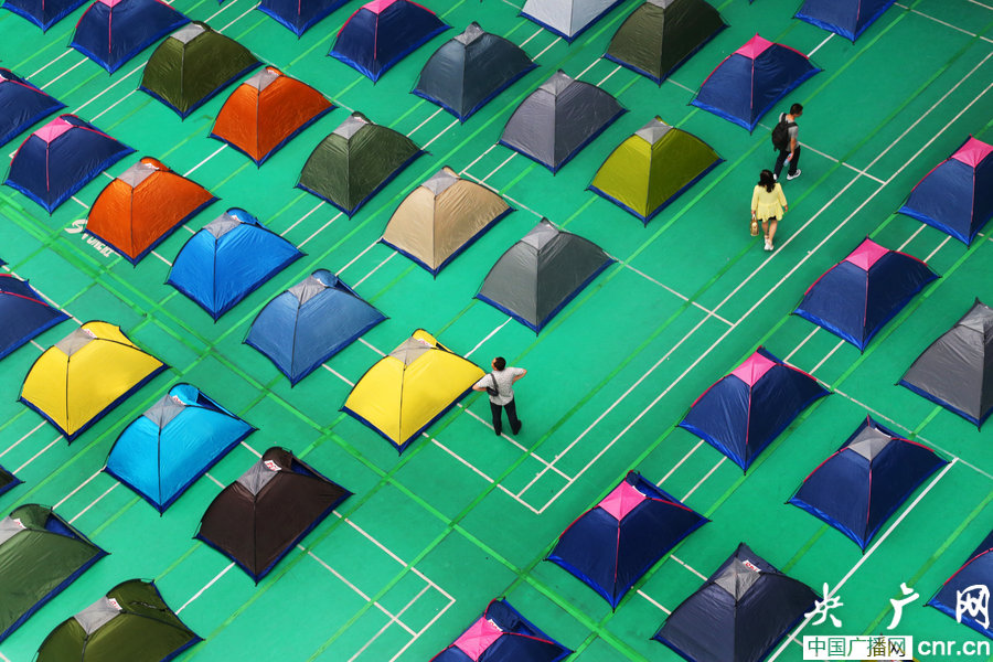 2014年09月03日,天津,天津大學新生報到日,天津大學在該校體育館中搭設200余頂 “愛心帳篷”,為前來報到的外地新生家長們免費提供住宿。