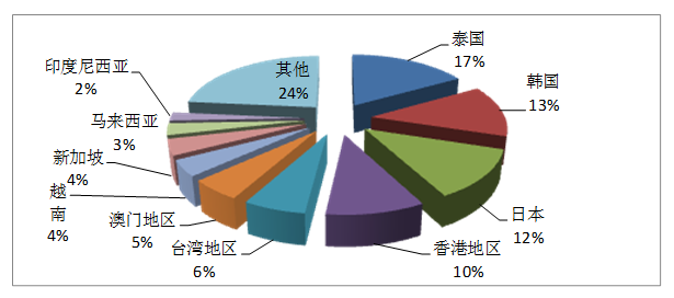 2016第二季度旅行社出境游目的地國家泰國韓國排名領先
