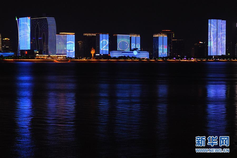 杭州夜景展示G20峰會LOGO
