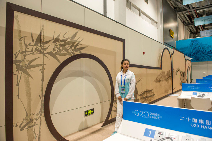 9月1日,G20杭州峰會新聞中心正式開放運行,這里處處展現著中國文化,尤其是杭州元素。