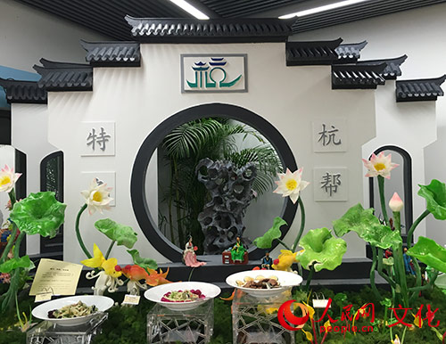 “江南風光”是杭州具有代表性的景觀。由廚師團隊用糖藝、面塑、泡沫雕的技術制作而成,充分展現了杭幫特色。