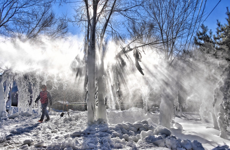 1月14日,玉渡山風(fēng)景區(qū)利用不凍山泉制作的冰雪景觀。 近日,眾多游客來到北京市延慶區(qū)玉渡山冰雪世界體驗(yàn)冰雪游樂活動。延慶區(qū)玉渡山位于燕山山脈海坨山腳下,玉渡山風(fēng)景區(qū)利用氣溫低、高山降雪和不凍山泉等自然優(yōu)勢打造了人工冰瀑、冰川等冰雪景觀,以及高山滑冰滑雪、雪地爬犁、雪圈等冰雪游客項(xiàng)目,每天吸引各地游客超過1000人次。 新華社記者 李欣 攝 -
