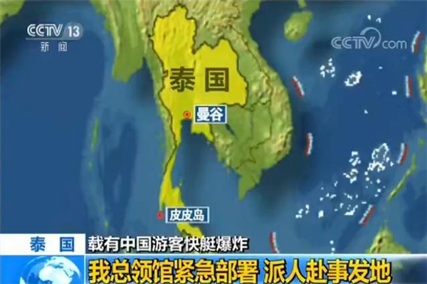 14日,泰國知名旅游景點皮皮島附近發(fā)生快艇發(fā)動機爆炸事件。事發(fā)快艇上當時共載有27名中國游客,以及數名泰國公民。經中國駐泰國宋卡總領事館確認,27名中國游客已被救上岸。中國游客都有不同程度受傷,其中5人受重傷,但都沒有生命危險。