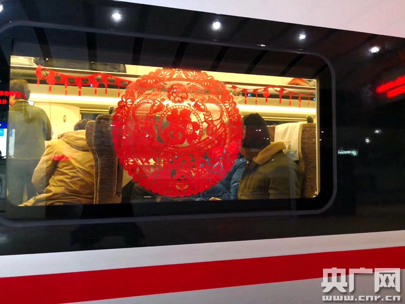 2018年2月1日,春運首日,“復興號”高鐵列車貼上紅紅福字。(央廣網發 李溢春攝)