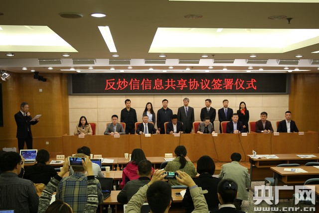 阿里巴巴、騰訊、京東等8家企業代表共同簽訂“反炒信”信息共享協議 央廣網記者高藝寧攝