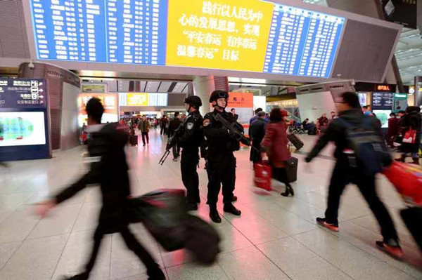 據(jù)悉,春節(jié)期間北京各大火車站的客流主要以中短途走親訪友為主。節(jié)日期間,北京鐵路警方在北京站、北京西站、北京南站等客流集中的火車站安排執(zhí)勤民警、特警值守,同時還安排巡邏民警加強對廣場、售票廳、候車室和站臺等區(qū)域的巡邏檢查,全面清除各類不安全隱患。此外,在京滬、京哈、京廣、京九、京原、京包、京通等進京鐵路沿線、高鐵沿線和主要車站安排民警盯守、巡邏,全面確保節(jié)日期間北京各大火車站和鐵路沿線的安全。