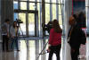 在“一帶一路”國際合作高峰論壇展廳內,兩名記者在拍照留念。(央廣網記者 王永康 攝) -