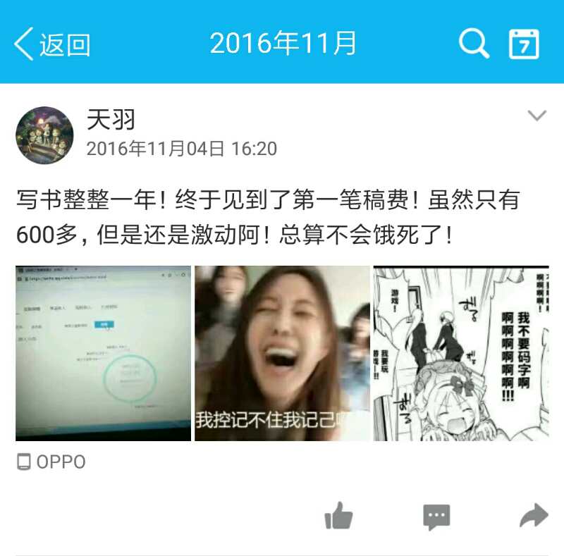 那會他還沒簽約網文平臺,只是把文章發到群里供人閱讀,沒有任何收入。讀者看到他每天熬夜更文卻沒有生活來源,便主動排隊給他訂起了外賣,甚至打賞。得知天羽被學校留級,他們一個個過來勸說他不要寫了,回去上課;聽說姐姐生病,正在四處求醫,有讀者立馬給他聯系了上海的大醫院;碰到偶像的演唱會,他們會在群里互通有無,一起訂票,聚到現場,“大家特激動,那個場面燃得呀”。