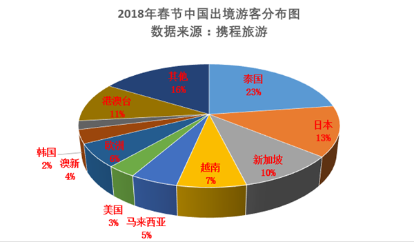 出境游一樣“走得不遠”。記者從攜程了解到,泰國、日本是春節期間最主要的兩大熱門目的地,春節期間有超過50萬中國游客前往這兩個國家。