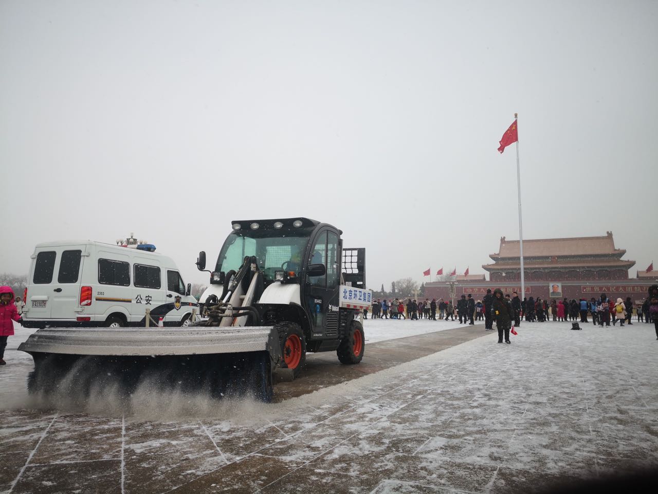 北京環衛在天安門廣場進行除雪作業。(央廣網發 溫瑩瑩攝)