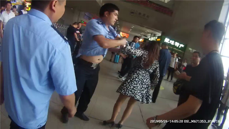 記者了解到,5月26日14時許,處于醉酒狀態的裴某來到邯鄲東站,準備乘坐高鐵前往廣州。通過安檢時,安檢員發現其行李箱內裝有超量的自噴式壓力罐體,安檢員向其解釋鐵路關于禁限帶物品的安全規定,并告知限帶物品不能帶進站帶上車。此時,情緒激動的裴某,瞬間搶過安檢員手中自噴式壓力罐,當場在安檢區域肆意噴灑。民警立即上前勸阻,但不聽勸阻的裴某反而情緒更加失控,趁著酒勁辱罵、撕扯、抓撓執勤民警,民警再三警告無效后,果斷采取措施,依法對其進行強制傳喚,帶回派出所做進一步調查。在派出所里裴某依然不斷推搡、辱罵民警,民警只能對其采取保護性約束措施,她不但不服從民警的約束,還對約束她的民警亂踢亂踹。
