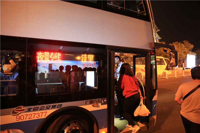 “夜景專線均使用雙層純電動公交車,擁有高景觀、零噪音、零排放的特點,游客在二層觀光時視野更好!北本┕幌嚓P負責人介紹,專線運營時間為6月7日至6月9日,前門站發車時間為18:20、18:40、19:00,設前門、王府井路口北、鑼鼓巷、鼓樓、地鐵北土城站、北辰西橋北、國家體育館、洼里南口8站;洼里南口站發車時間為20:00、20:30、21:00,設洼里南口、國家體育館、北辰西橋北、地鐵北土城站、北新橋路口西、東內小街、朝陽門南、前門東8站。單一票價10元。