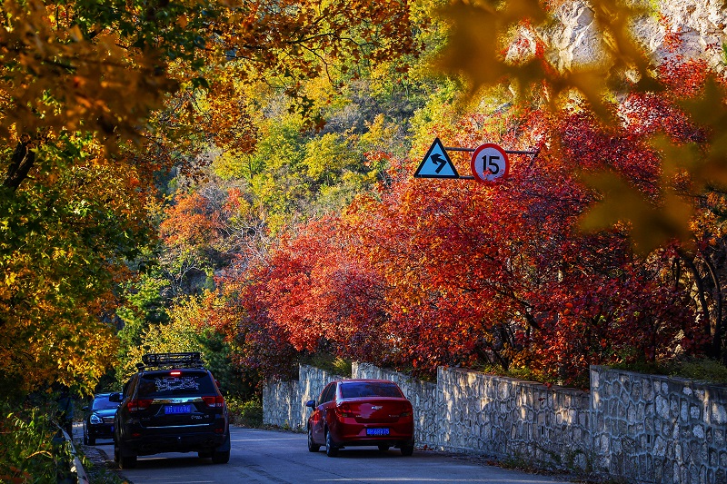 北京山區因為海拔較高,溫度較市區更低,秋色來到的會比市區早一些。從2002年起,北京全市就開始在平谷、懷柔、密云、昌平、延慶、門頭溝、房山以及順義、海淀、豐臺等區的山區部分推進彩色樹種造林工程,共栽下彩葉林40多萬畝,為市民京郊金秋“賞紅”提供更多選擇。