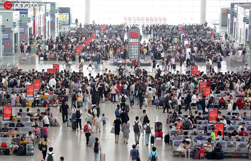 2019年10月5日,在江西南昌西車站,旅客正在候車。國慶假期過半,全國鐵路于當日開始出現返程客流高峰(央廣網發 東方IC供圖)