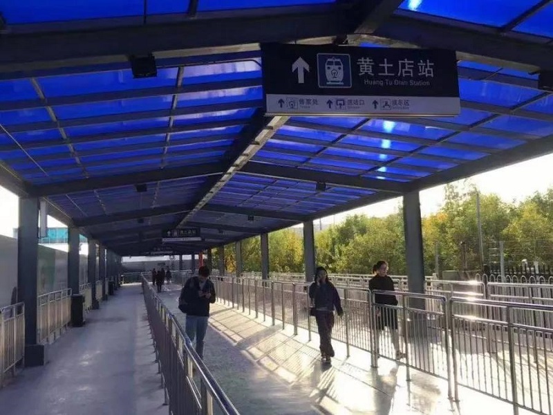 北京市郊鐵路S2線(延慶線)和S5線(懷密線)市內(nèi)始發(fā)站均為黃土店站。黃土店站緊鄰地鐵13號(hào)線、8號(hào)線霍營站,乘客從霍營地鐵站出站后,沿著柵欄和指示牌就可輕松到達(dá)火車站。