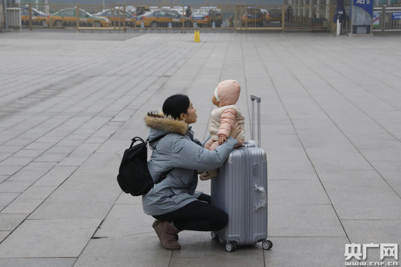 北京西站站前廣場上的旅客(央廣網記者 張凱航 攝)