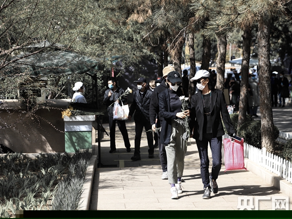 清明節(jié)當(dāng)日,八寶山人民公墓加強(qiáng)限流、防護(hù)措施,更多市民選擇不到現(xiàn)場(chǎng)的“云祭掃”(央廣網(wǎng)記者 張佳琪 攝)