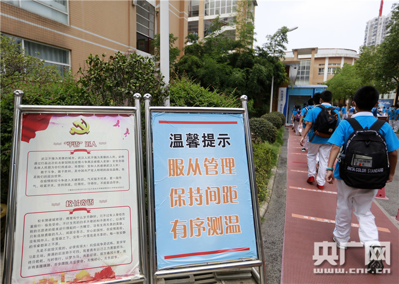 湖北省武漢市楚才中學(xué)門口,七年級(jí)學(xué)生正進(jìn)入學(xué)校(央廣網(wǎng)發(fā) 王方攝)