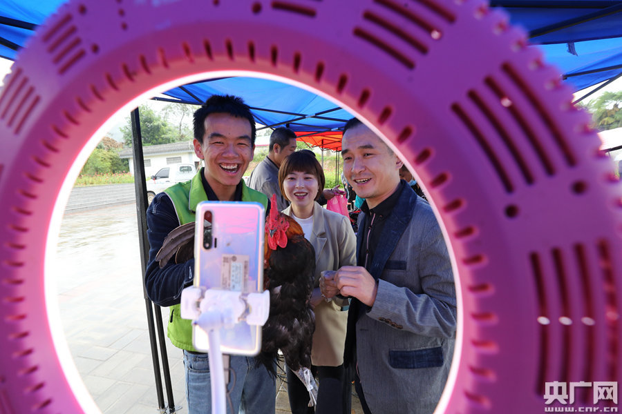 央廣網隴南9月26日消息(記者韓靖) 9月25日,一場直播帶貨活動在甘肅隴南成縣陳家大莊村文化廣場進行,隴小南網貨供應中心副經理李林萍和同事一起在電商平臺上銷售農戶養殖的土雞。在半個小時的直播過程中,共賣出117只土雞,最高在線人數4029人。