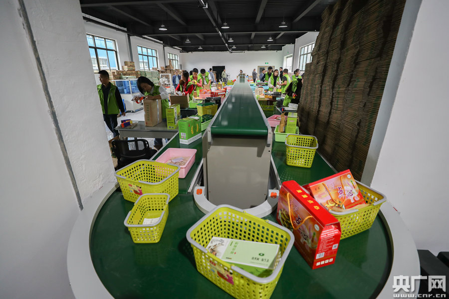 隴小南網貨供應中心車間流水線(央廣網記者 韓靖 攝)