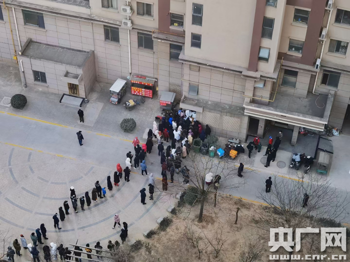 石家莊市一居民小區內,群眾排起長隊等待核酸檢測
