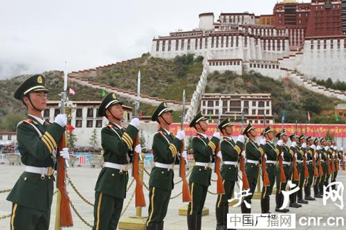 西藏舉行升國(guó)旗唱國(guó)歌儀式慶祝祖國(guó)64歲華誕