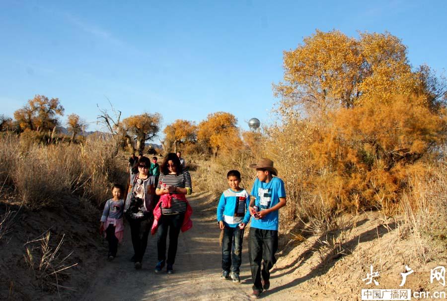 游客進入木壘胡楊林景區(qū)(央廣網(wǎng)發(fā) 張雷 攝)
