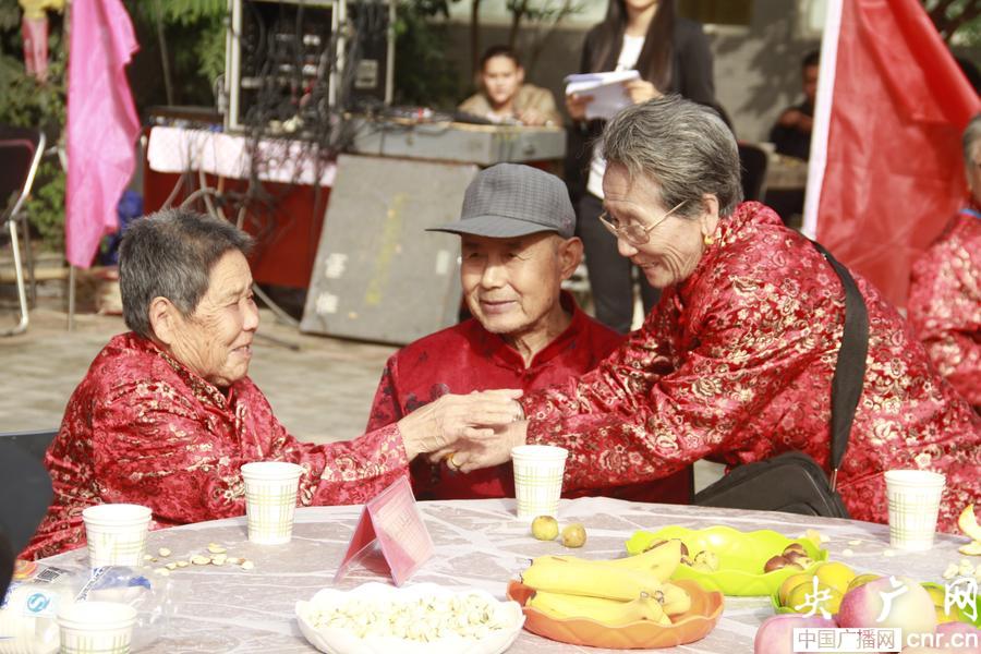 央廣網(wǎng)北京10月11日消息(記者李文蕊 通訊員徐獻(xiàn)超)10月10日上午,北京北天堂好生熱鬧,9個(gè)大圓桌上面放有各色水果,九九重陽的祝壽的橫幅高高掛起,院子里人來人往笑聲飛揚(yáng),老人們穿著大紅的唐裝棉襖散發(fā)著精氣神兒,再配有中央民族藝術(shù)團(tuán)的特色演出,這就是每年一次的北京北天堂與老人們幸福之約。