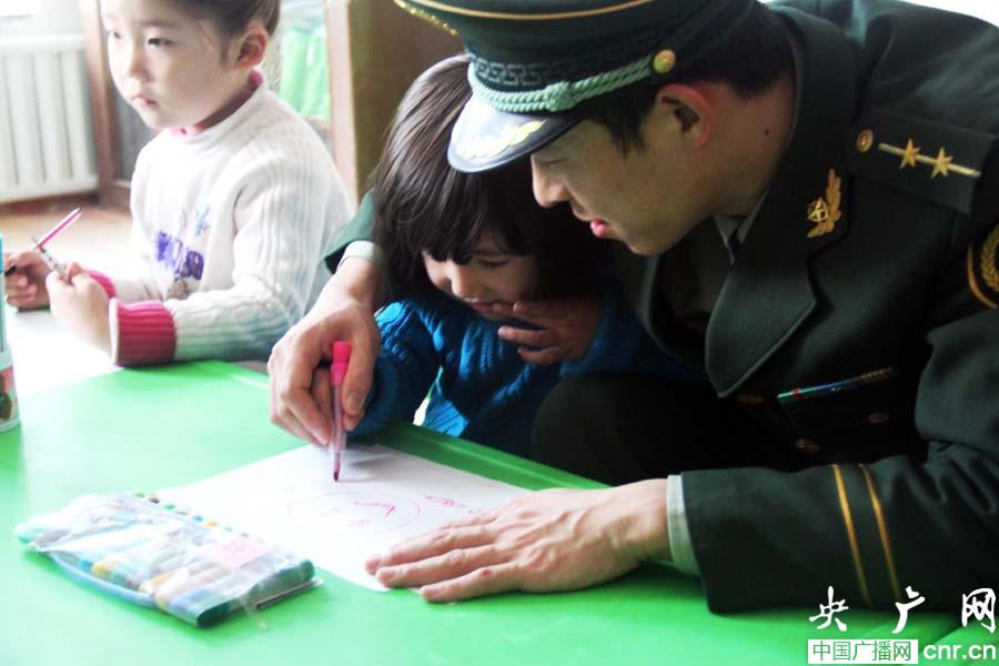 央廣網阿勒泰11月20日消息(記者張雷、通訊員王友波)在“世界問候日”來臨之際,武警新疆阿勒泰邊防支隊恰勒什海邊防派出所官兵們帶上水彩蠟筆、畫紙等工具,來到寄宿制學校與幼兒園的小朋友們共同度過這具有紀念意義的節日。