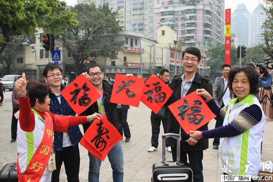 廣州百站送萬(wàn)福 情注福字暖人心 (央廣網(wǎng)記者 鄭澍 攝)