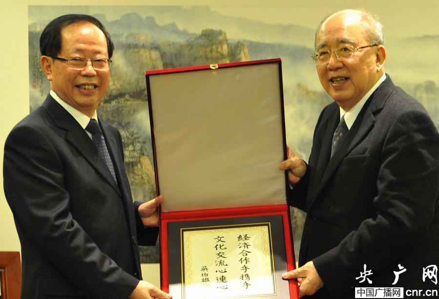2月20日,廣西壯族自治區黨委副書記危朝安在臺北拜訪中國國民黨榮譽主席吳伯雄。(央廣網記者 張壘 攝)