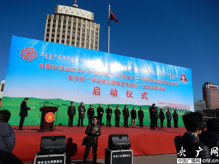 央廣網(wǎng)呼和浩特3月4日消息(記者寶音)今天(4日)上午,內(nèi)蒙古自治區(qū)2014“德潤草原·文明之行——學雷鋒志愿服務在行動”暨首府“學雷鋒志愿服務我先行”主題實踐活動啟動儀式在呼和浩特市新華廣場隆重舉行。同時,在全區(qū)各地設立分會場,同時舉辦啟動儀式。