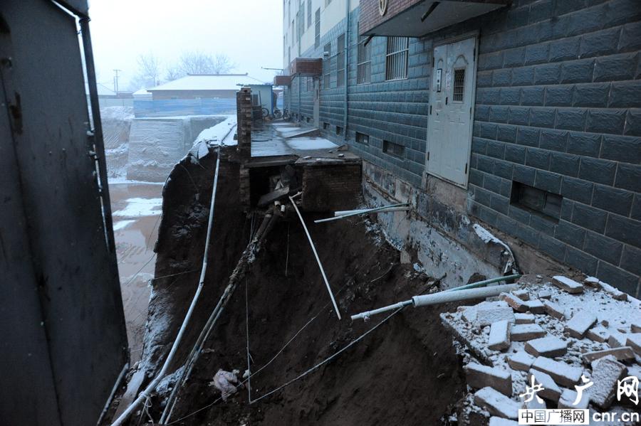 央廣網(wǎng)蘭州3月8日消息(記者焦健 通訊員李鵬博 羅明偉)3月7日,甘肅省慶陽(yáng)市西峰區(qū)一住宅小區(qū)因?yàn)楣さ厥┕ぴ斐勺詠硭芷屏眩率咕用褡≌瑯菃卧T前約20平米的土地塌陷消失,兩名住戶出門時(shí)不慎跌入深坑,樓內(nèi)住戶被困。當(dāng)?shù)叵啦筷?duì)接警到達(dá)現(xiàn)場(chǎng)后,從該住宅樓1樓住戶家的客廳破拆出逃生通道,將樓內(nèi)60余名被困人員成功疏散。