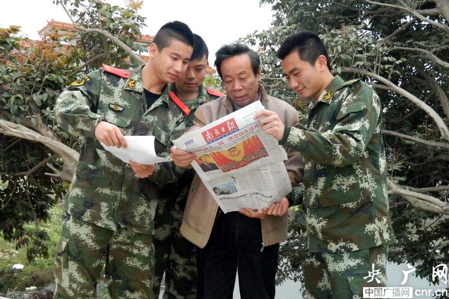 廣東汕尾邊防官兵“兩會(huì)”精神送進(jìn)家(央廣網(wǎng)發(fā) 楊帆 攝)