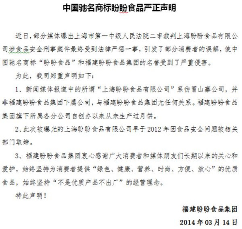2012年8月1日至5日,該公司將摻入過期月餅餡料生產的月餅銷往十余家單位,數量近7000千克,價值10萬余元。2012年8月7日案發,質量技術監督部門在盼盼公司廠房內查獲回收的過期月餅約3,000千克。根據上海市食品藥品監督所出具報告,盼盼公司成品月餅中檢出霉菌超標。