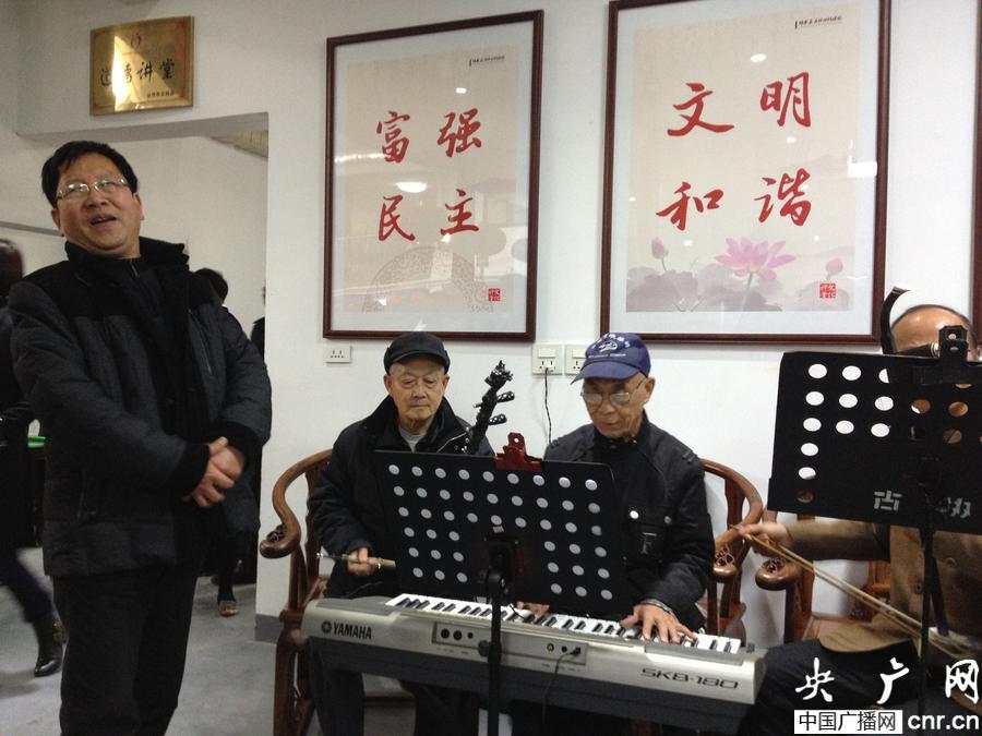 路橋管前村文化禮堂內,戲迷們正在表演(央廣網記者 李佳 攝)