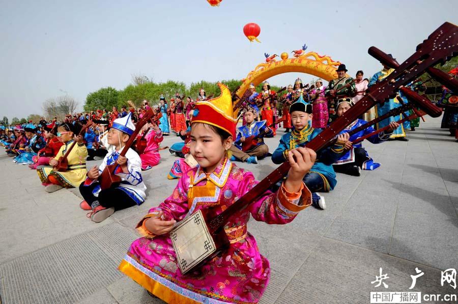 百名學生彈奏托布秀爾(央廣網記者 張雷 攝)